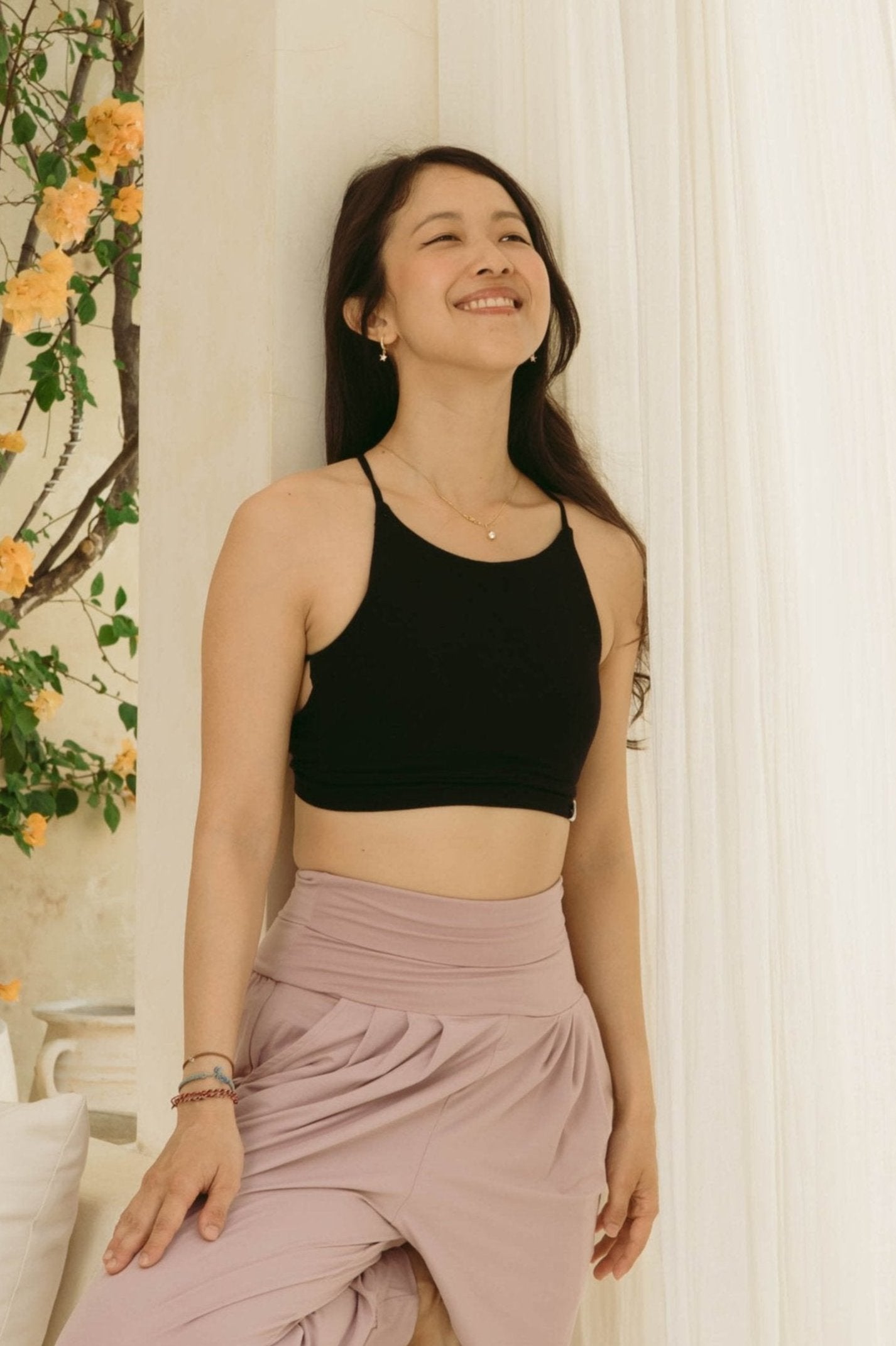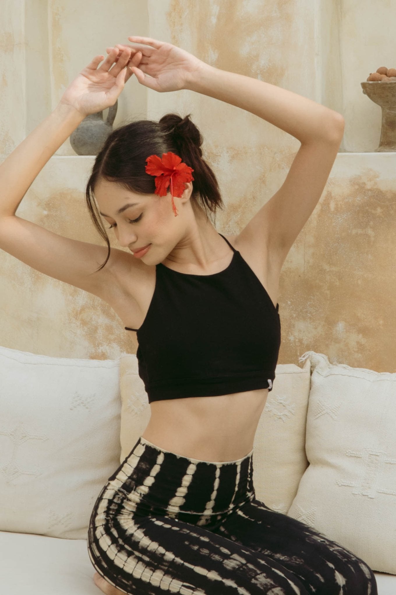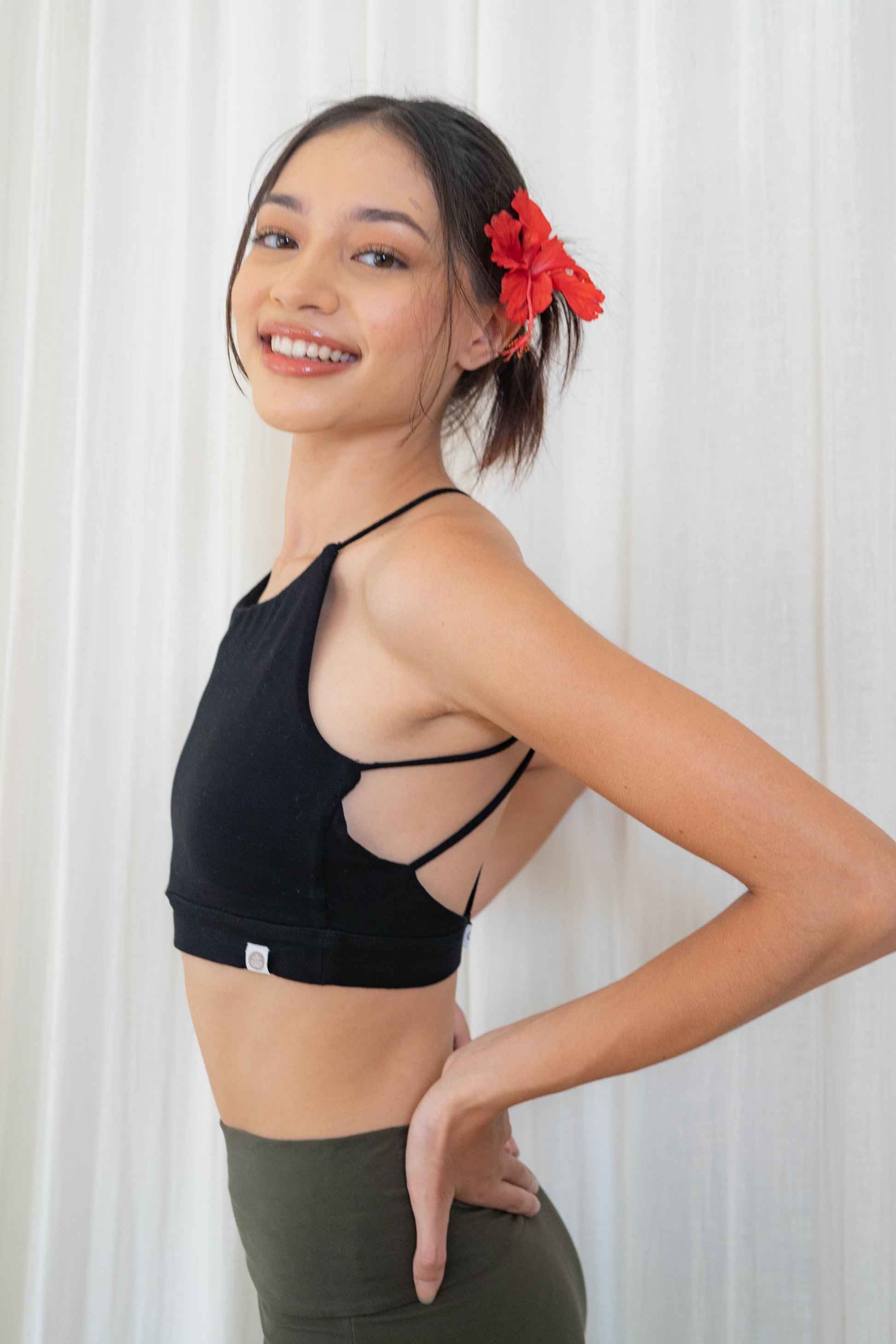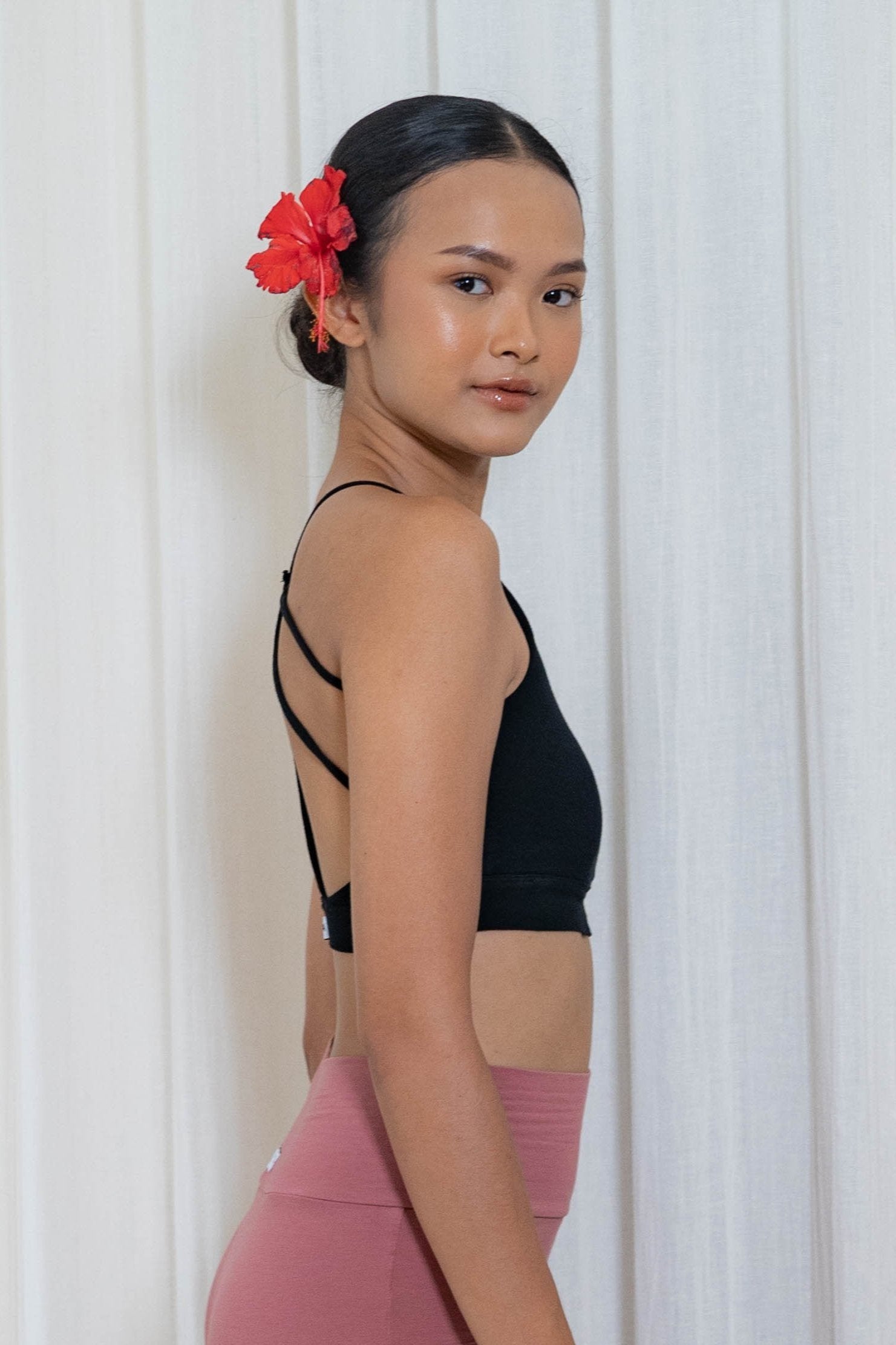 Experience the elegance of the Ananda Top by CHITTA in Black. This top features a striking cross back design with adjustable straps, allowing you to find the perfect fit while adding a touch of sophistication to every movement. Thoughtfully handcrafted for comfort, it includes a soft band closure and a flattering fit that enhances your natural silhouette.