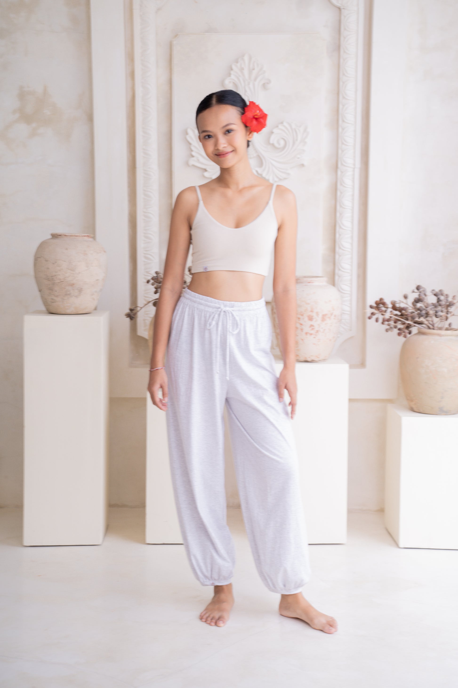 Made from 100% premium lightweight cotton, the Soma Joggers feel breathable and gentle against the skin, perfect for movement, rest, or anything in between. The light melange grey, adds a calm, neutral tone that pairs effortlessly with any top.