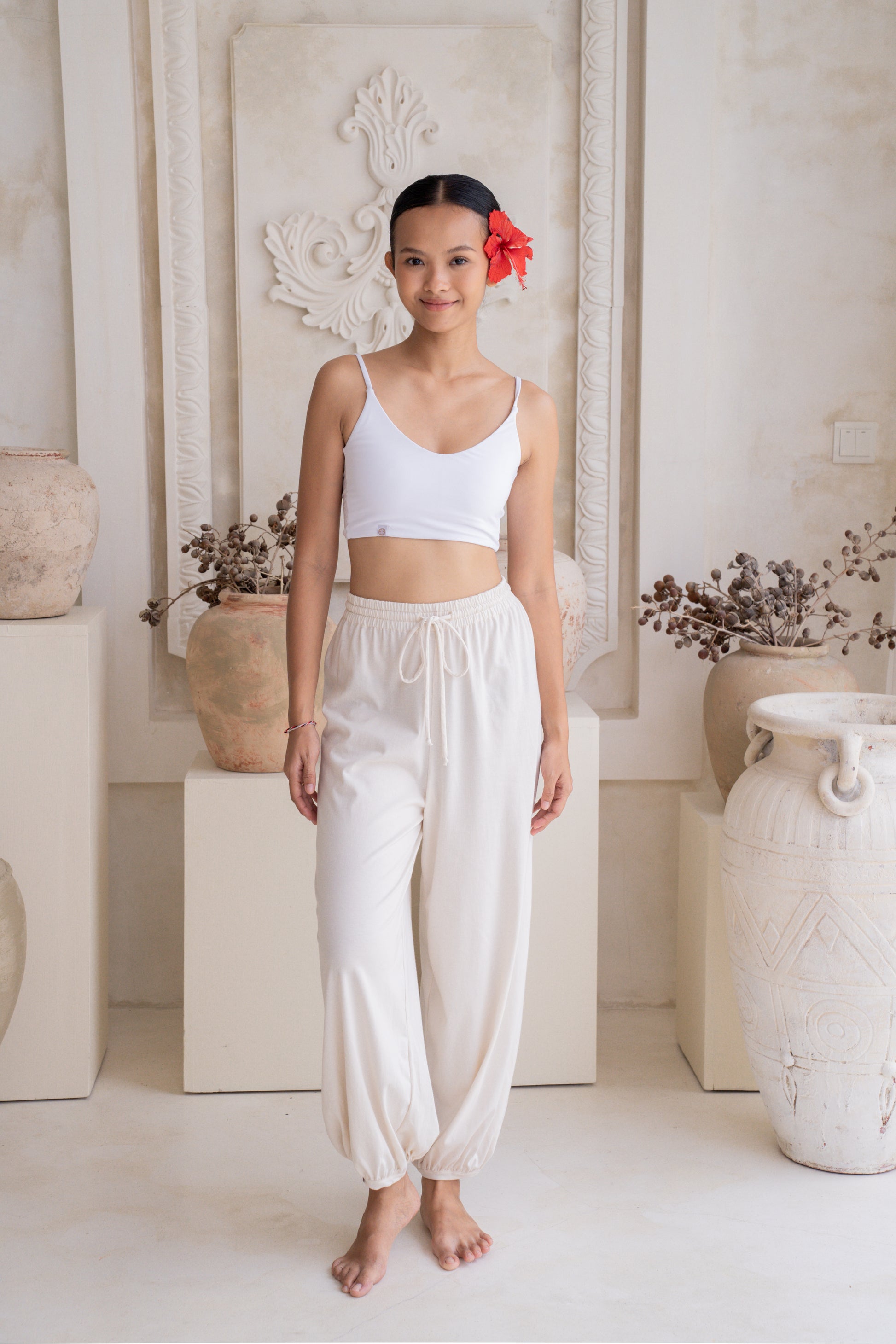 Made from 100% premium lightweight cotton, the Soma Joggers feel breathable and gentle against the skin, perfect for movement, rest, or anything in between. The Moonlight hue offers a soft, luminous neutral, a shade resting between cream and pearl, bringing quiet elegance and subtle warmth to your everyday flow.