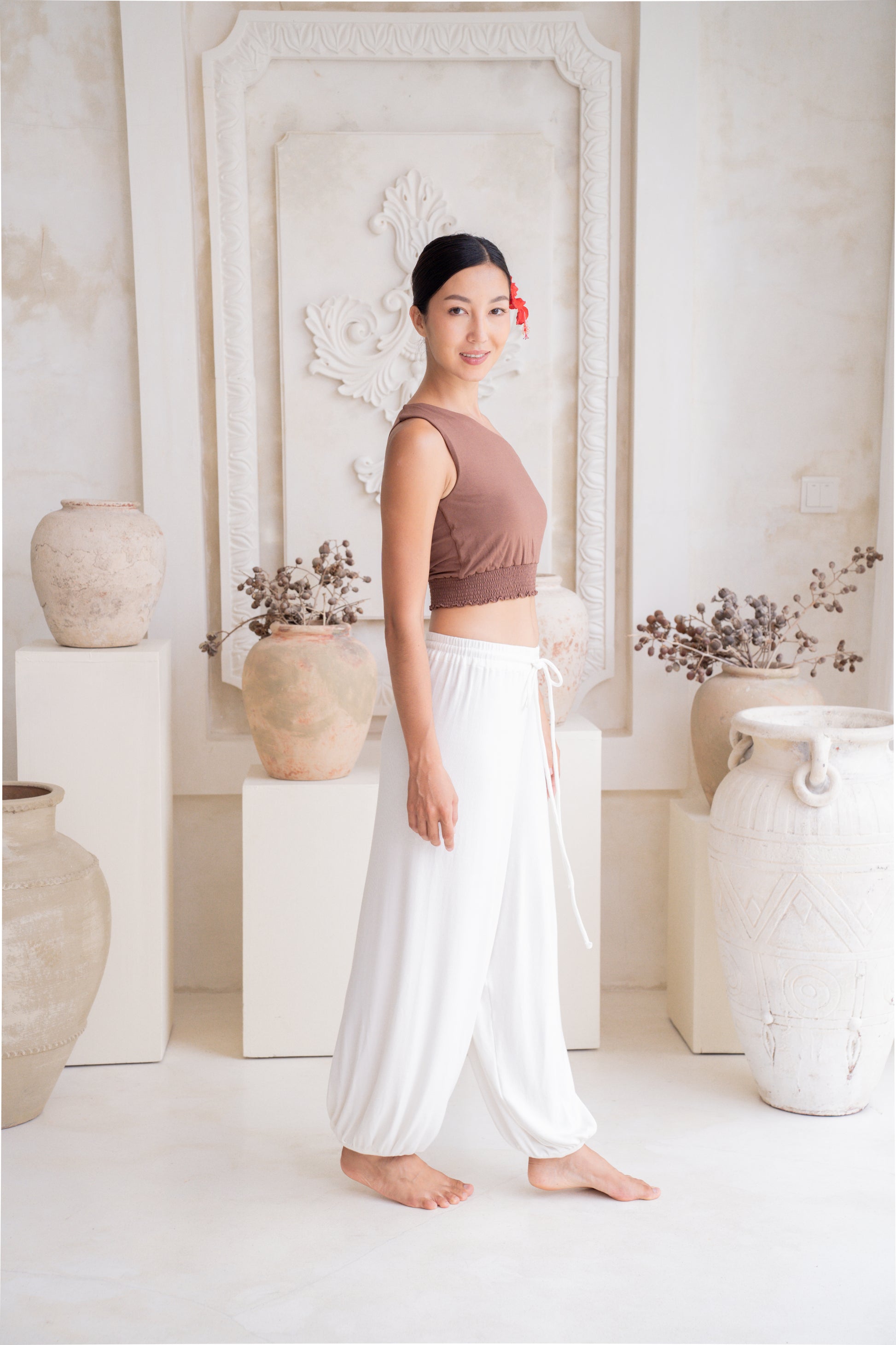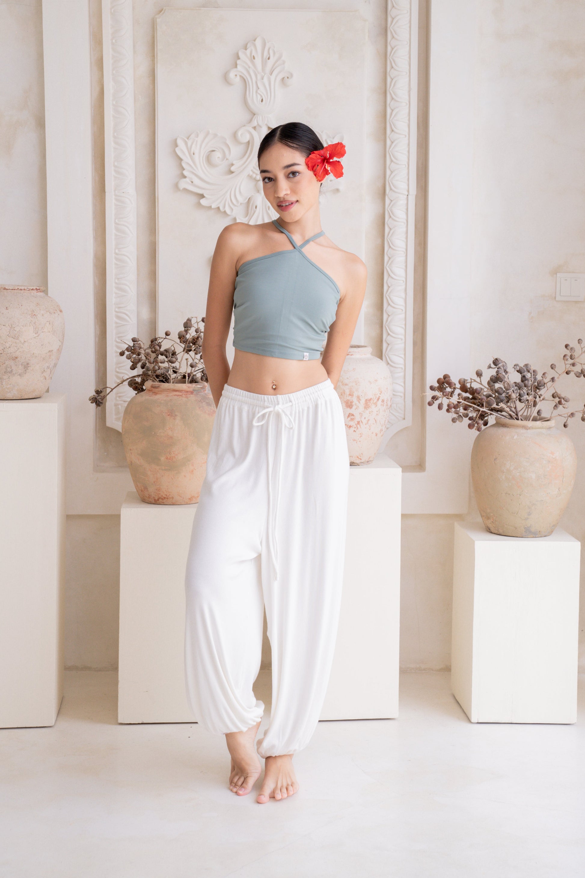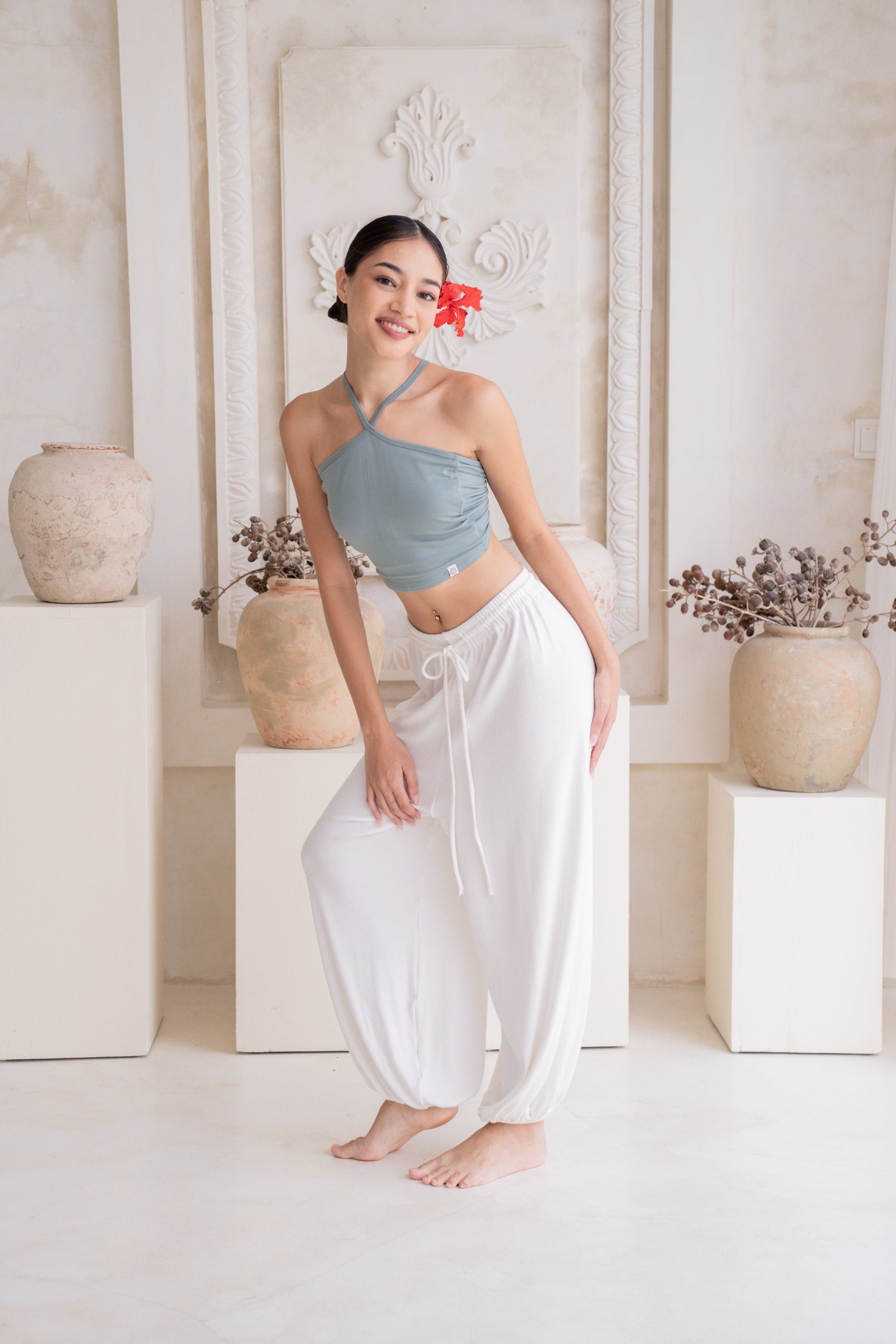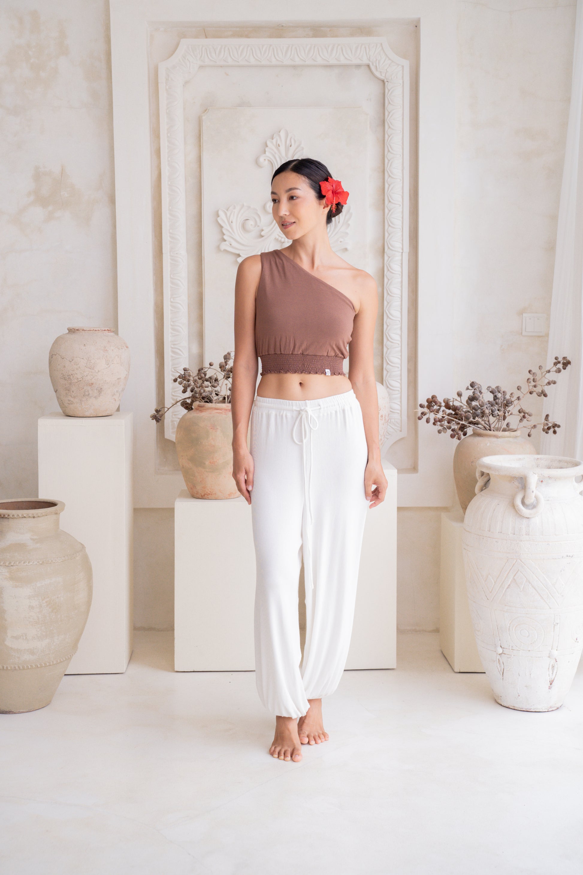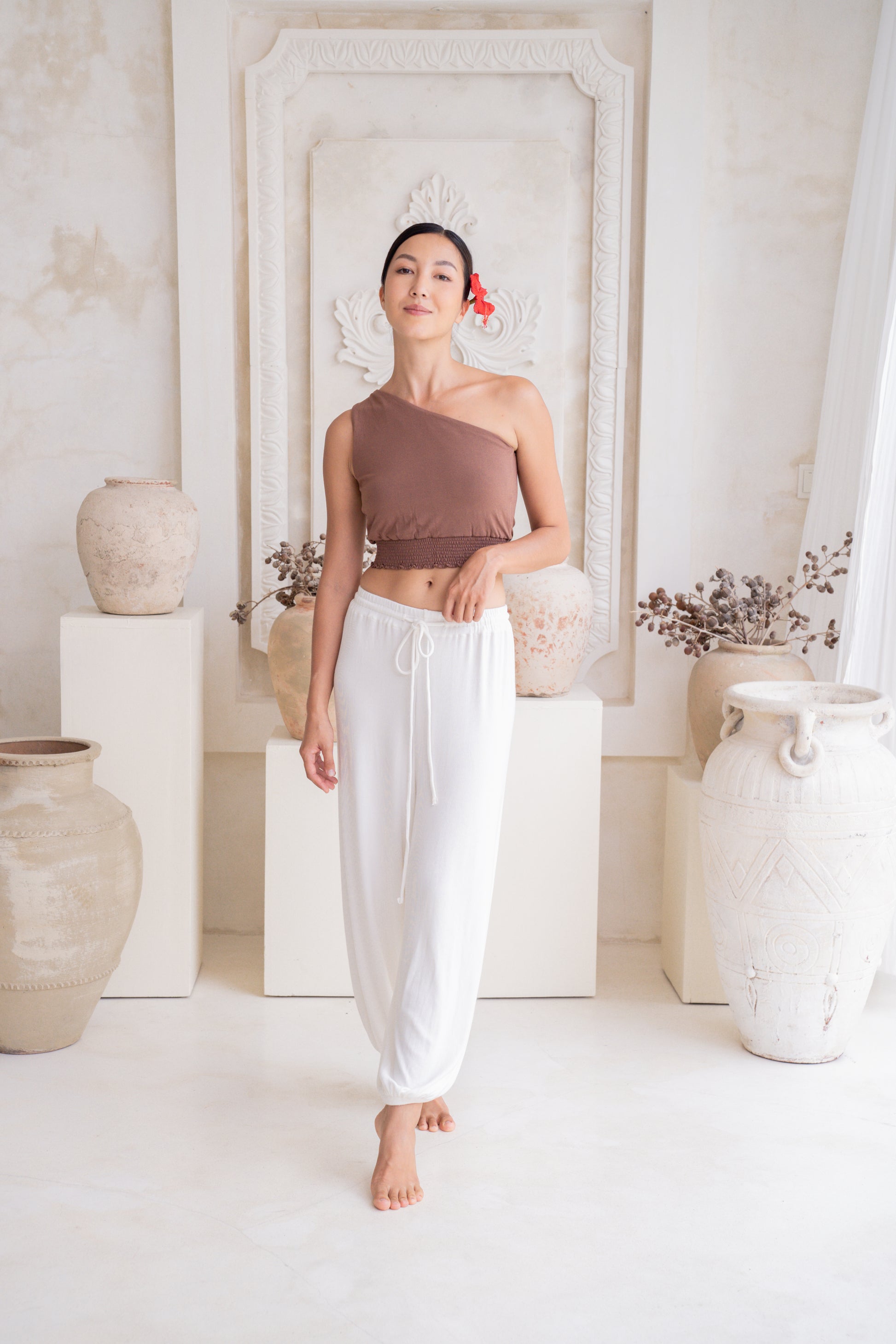 Feel total ease and fluidity in the Soma Wide Ribbed Joggers in Crème. Each pair is handcrafted for a perfect fit, featuring a relaxed, wide-leg silhouette that flows beautifully. The adjustable waistband with a drawstring ensures a secure, personalized feel, so you can move with complete comfort.